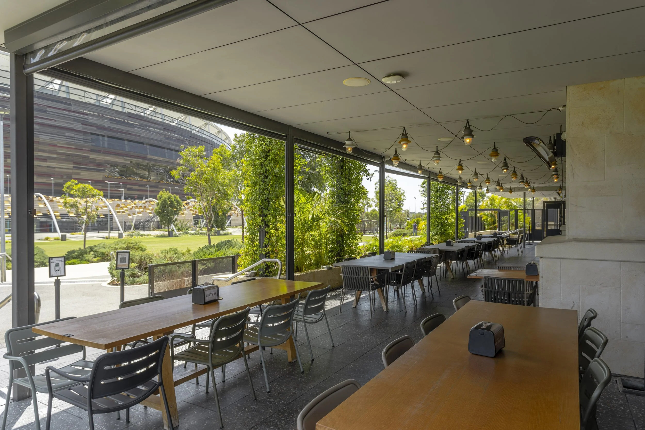 Our terrace spaces wrap around the exterior of the Main Bar, offering flexible options depending on group size and preferred outlook. Choose from views across the stadium or towards the river, with spaces suited to functions of 60 guests or up to 250 when combined with an indoor area.